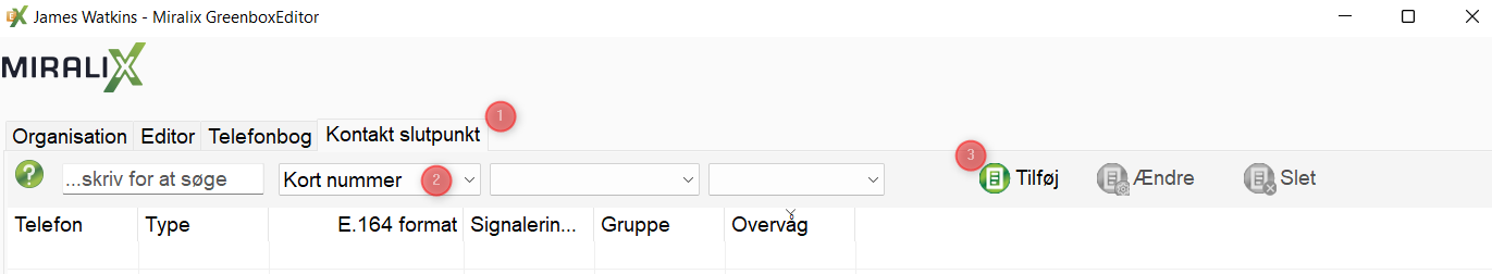 Naviger til GreenboxEditor og vælg fanen ”Kontakt slutpunkt”. (1)