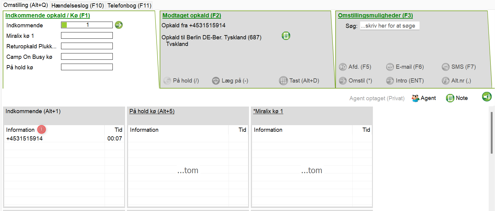 Indkommende opkald / Kø F1