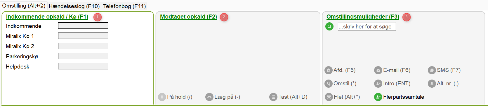 Miralix Office Operator har 3 felter under "Omstilling", som benyttes til at give overblik over: