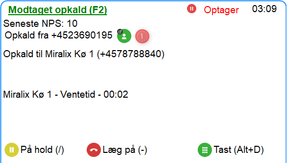 Ny kontakt kan oprettes på den, der tales med, ved at klikke på telefonbog-ikonet i F2 feltet (1).