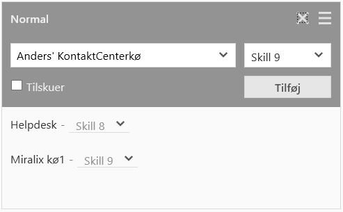 Tilskuerrolle kan aktiveres/deaktiveres, ved at holde musen på et kø-navn. Klik på ikonet for at aktivere/deaktivere tilskuerrolle.