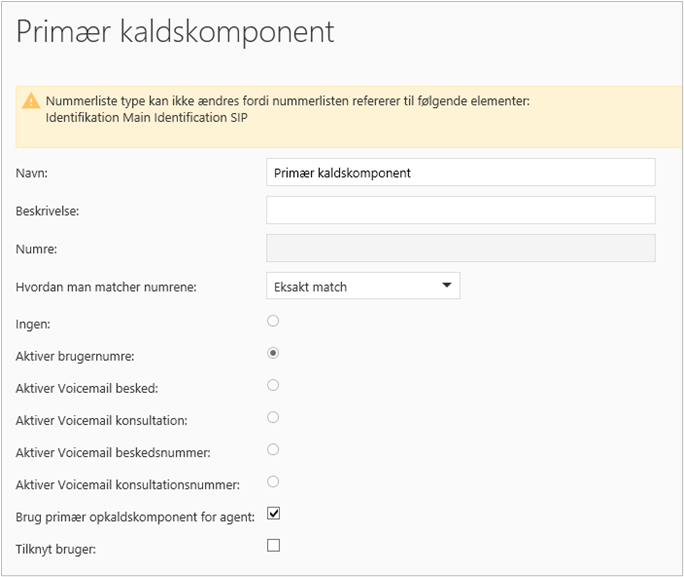 Oprettelse af kombinationen Primær opkaldskomponent