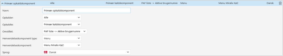 Opret kombinationen Primær opkaldskomponent som vist i nedenstående billede.