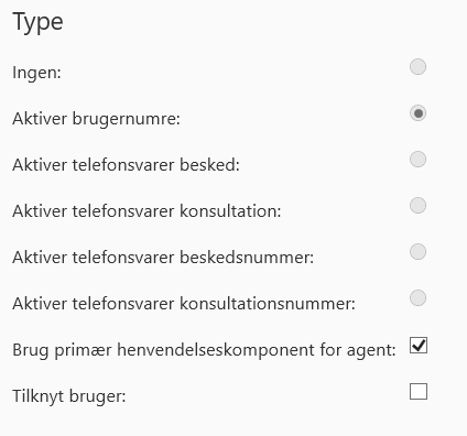 I Supervisor’s Værktøjskasse under Routingliste er der oprettet en nummerliste kaldet ”PAF Liste -> Aktive brugernumre” hvor der er valgt ”Aktiver brugernumre” samt ”Brug primær henvendelseskomponent for agent” som vist på nedenstående billede.
