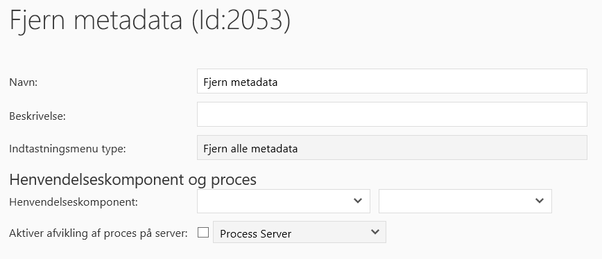 Vælge en proces: | Såfremt der vælges denne metode til metadata, skal agenten i drop- down menuen vælge den proces, der ønskes afviklet hos agenten, når opkaldet modtages. |