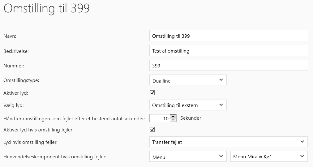 Henvendelseskomponent hvis omstilling fejler: | Vælg den henvendelseskomponent, som opkaldet skal sendes videre til, såfremt omstillingen mislykkes. | |