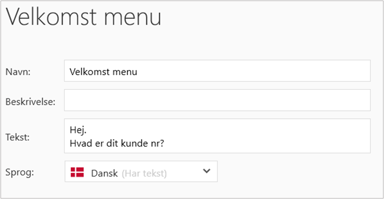 I Tekst kan Supervisor lave opsætning for en tekst som bliver sendt til Web chat. En tekst indeholder en besked, der kan opsættes sådan, at den fremsendes ved f.eks. påbegyndelse af en web chat. Tekst kan benyttes til at stille et spørgsmål til kunden i Web chat, inden denne tilbydes en agent. Et eksempel på en tekst kunne være et spørgsmål omkring hvilket kundenummer den pågældende person, som skriver i Web chatten, har. På billedet nedenfor ses muligheden for tekst opsætning.