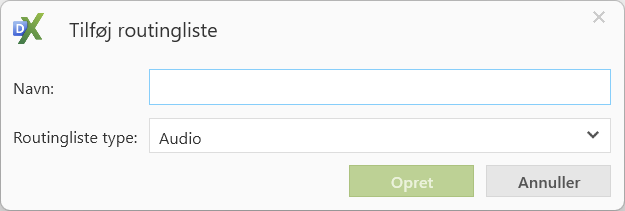 Navngiv routningslisten, vælg type og klik på “Opret”. Se nærmere under opsætning af routningsliste.