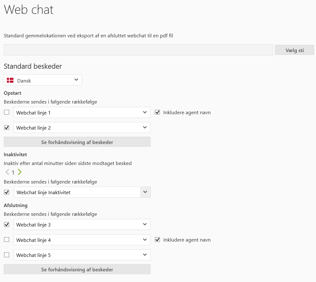 Husk at markere “Inkludere agent navn”, hvis du ønsker at oplyse web chat kunden om agentens fornavn.